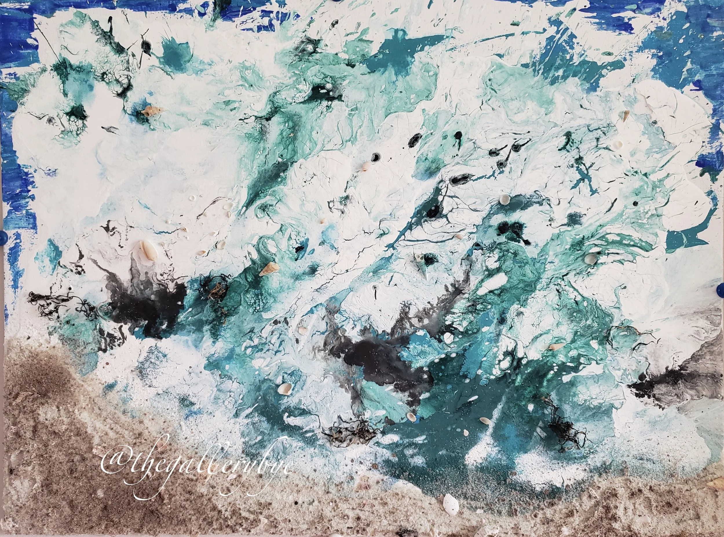 Tide12" x 16" Flat Canvas Acrylic, Spray Paint, Sand, Seashells Not Framed Available as Original or Print Contact for Price Slide 1 Slide 1 (current slide) Slide 2 Slide 2 (current slide) Slide 3 Slide 3 (current slide)